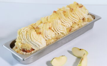 Apfelkuchen-Eis mit Vanille-Biskuit und Apfelsauce Apfelsauce Zutaten Äpfel Renette – 450 gr Glukosesirup Paste mit DE-Wert 60 – 220 gr Saccharose – 150 gr Dextrose – 150 gr Reisstärke – 35 gr Zitronensäure – 2 gr Zubereitung Die Äpfel waschen, schälen und auch das Kerngehäuse entfernen; In Stücke schneiden und in eine Schneidemaschine mit Erwärmungsfunktion […]